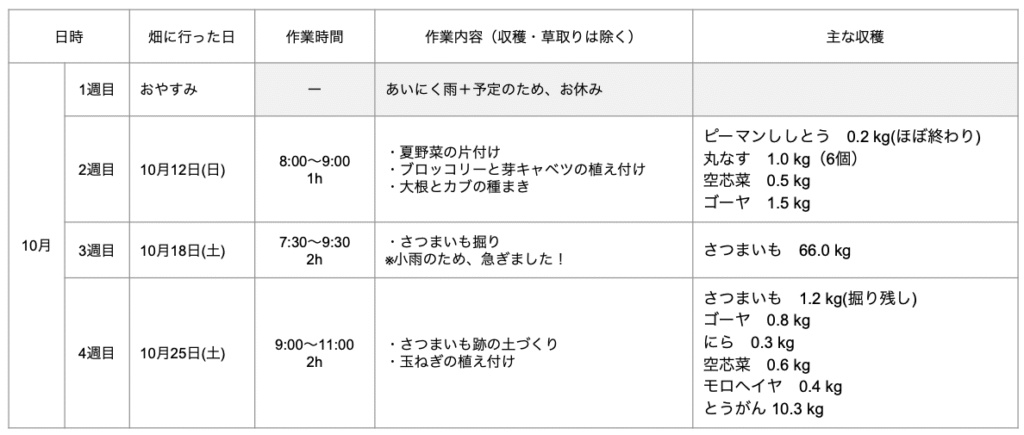 さて、2025年10月の畑ライフをまとめてご報告していきます。